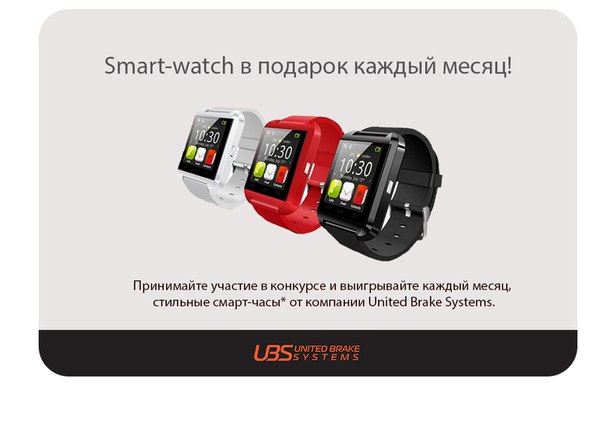 Внимание!! Акция "Smart-watch в подарок" действует последний месяц!!! Если вы хотите стать обладателем новых стильных смарт - часов от компании UBS - не время медлить!!! Фотографируйте наклейку на своей машине и присылайте нам сообщение! набирайте лайки и.... удачи!!